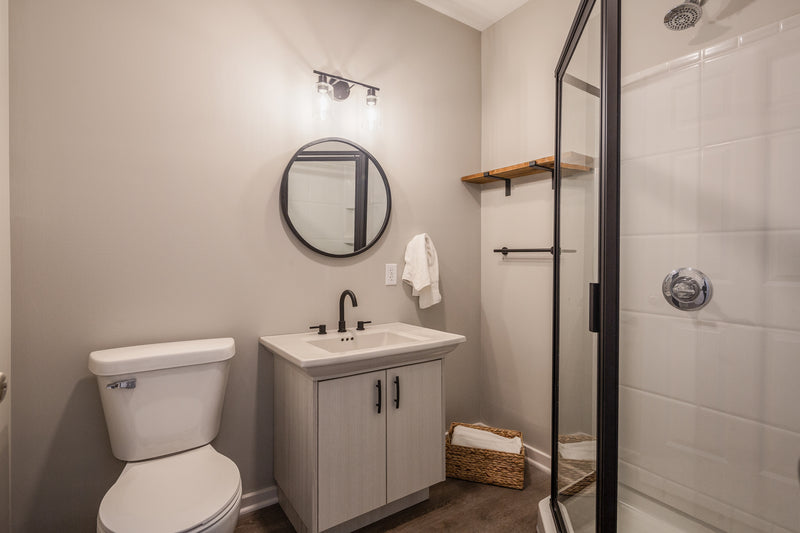 We also provided the bathroom vanities, including a fully custom vanity built to accommodate an existing sink Wade wanted to reuse. This thoughtful detail blended cost savings with custom design, ensuring the bathrooms matched the quality and character of the kitchens.